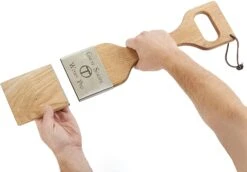 - STAINLESS STEEL CONSTRUCTION: The blade of our grill griddle scraper is crafted from durable stainless steel that can take the beating without bending, deforming or rusting. The handle and the blade are firmly attached and won’t come off even after years of use.