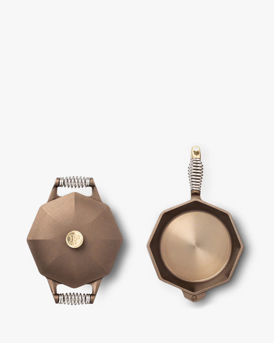 The most versatile pan you’ll ever own. The FINEX cast iron skillet is polished smooth for perfect eggs every time. It’s a searing machine for hearty steaks, chops and salmon. It’s brilliant for baking perfect cornbread, pies and cakes. Introduce a lid and it’s great for steaming, braising and simmering. From stovetop, to oven, to grill—even over the coals—the FINEX cast iron skillet is a trusted essential you’ll pass down for generations.