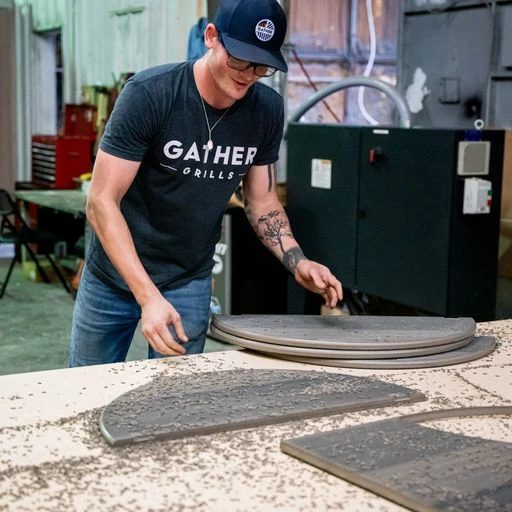 - Stainless steel ring with branded cover plates and a lazy susan sub-grate that holds a two ¼ bar grates and two ¼ griddle for a 46” diameter cooking surface