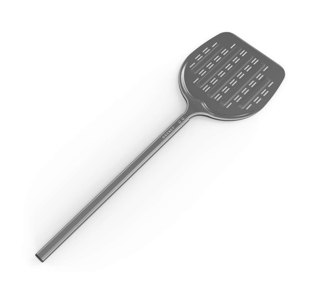 Made from aluminum with a hard anodized finish, this peel is designed exactly the same as larger, commercial use pizza peels. Tapered on one edge for easy access beneath baked goods or pans, the Gozney Placement Peel includes perforations to allow excess flour to fall away when making fresh pizza. These perforations also help steam escape from cooked baked goods, resulting in a crispier base. The non-stick surface is perfect for a smooth transition between the peel’s surface and the hot stone floor.