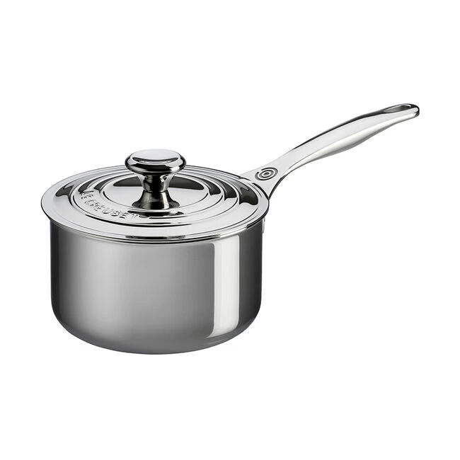 The 2 qt. saucepan is a cornerstone of the kitchen, perfect for preparing sauces and side dishes. The self-sealing lid locks in moisture, while a relief vent releases steam to prevent boil-over. Laser-etched interior capacity markings make measuring easy.