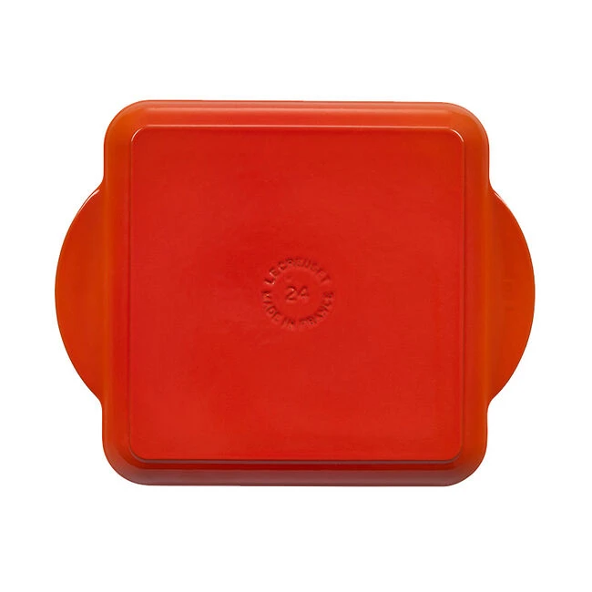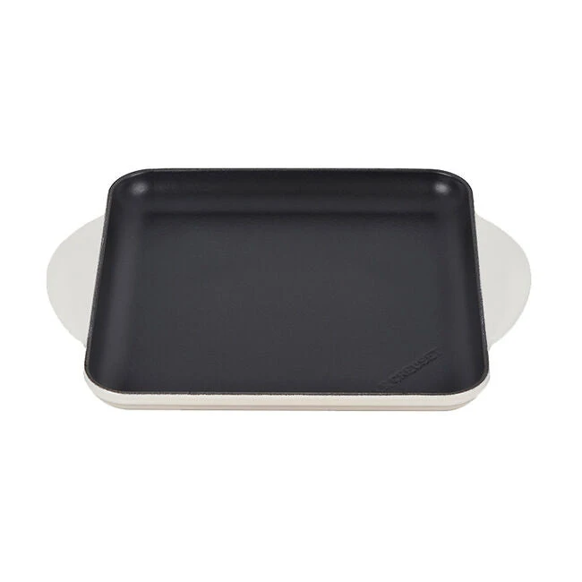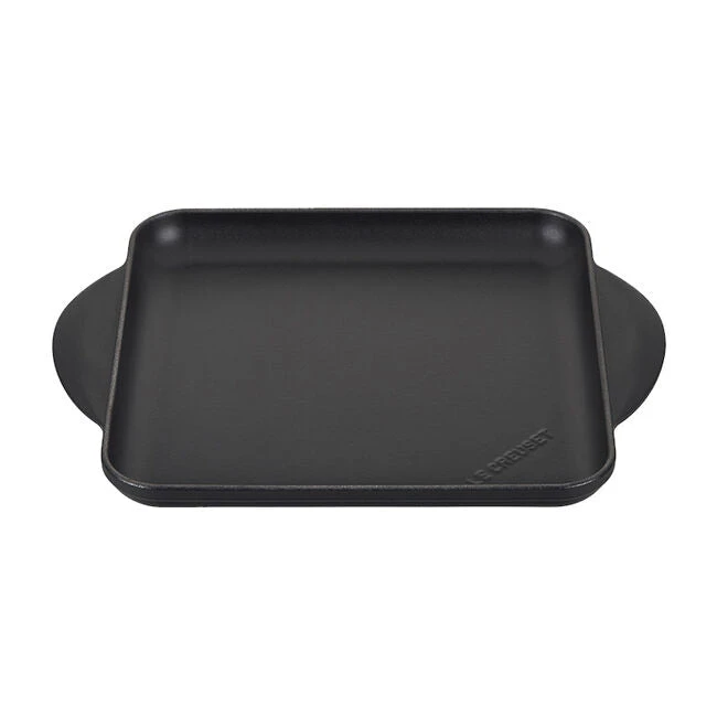 The surface of the Square Griddle is finished with a matte black enamel that eliminates the need for the traditional seasoning and maintenance of raw cast iron. Specially formulated for high-surface temperature cooking, the enamel develops a natural patina over time that is ideal for searing.