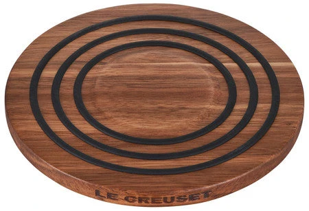 Simply place this magnetic trivet on the bottom of any metal cookware piece – including enameled cast iron – for a trivet that travels easily from kitchen to table.