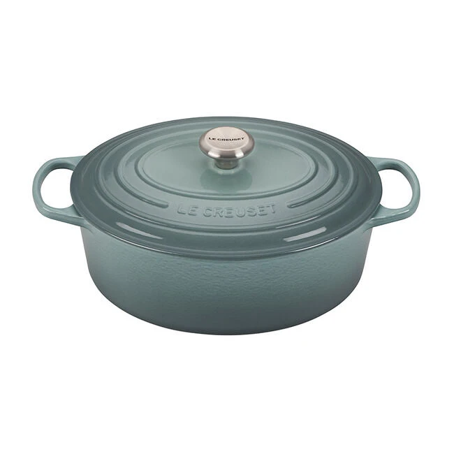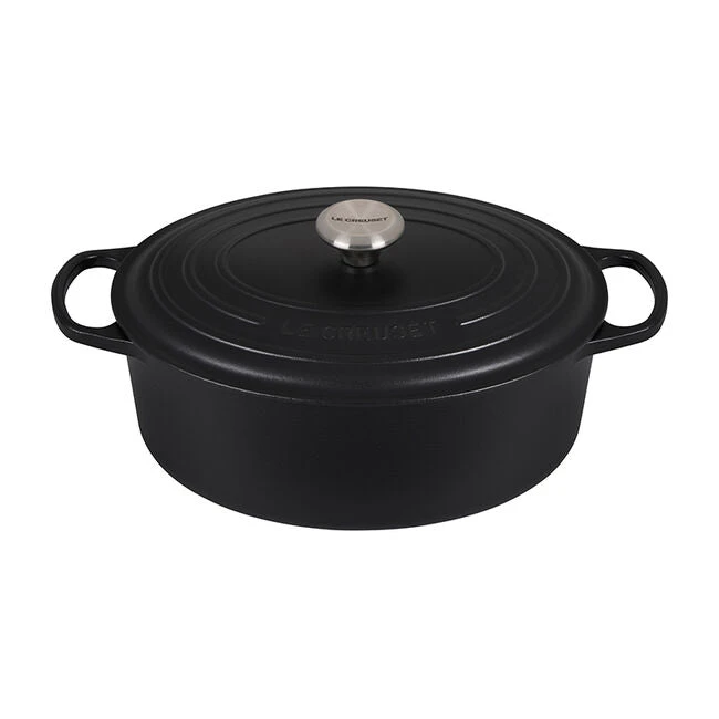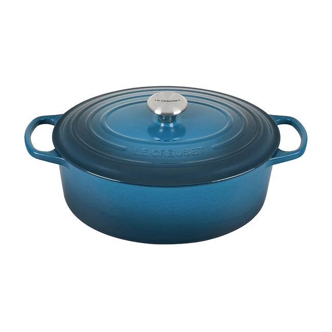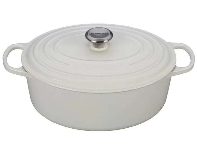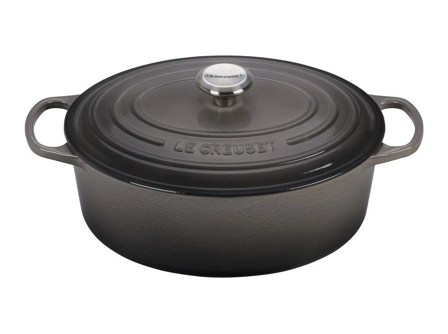 The iconic Le Creuset oval Dutch oven is indispensable in the kitchens of home cooks and professional chefs alike. Long recognized for its strength and durability, cast iron is the prime material for slow-cooking, braising and roasting, thanks to its ability to maintain even and consistent heat. The enameled oval Dutch oven needs no seasoning, and it’s suitable for both stovetop and oven use. The oval shape is particularly suited to longer cuts of meat or poultry.
