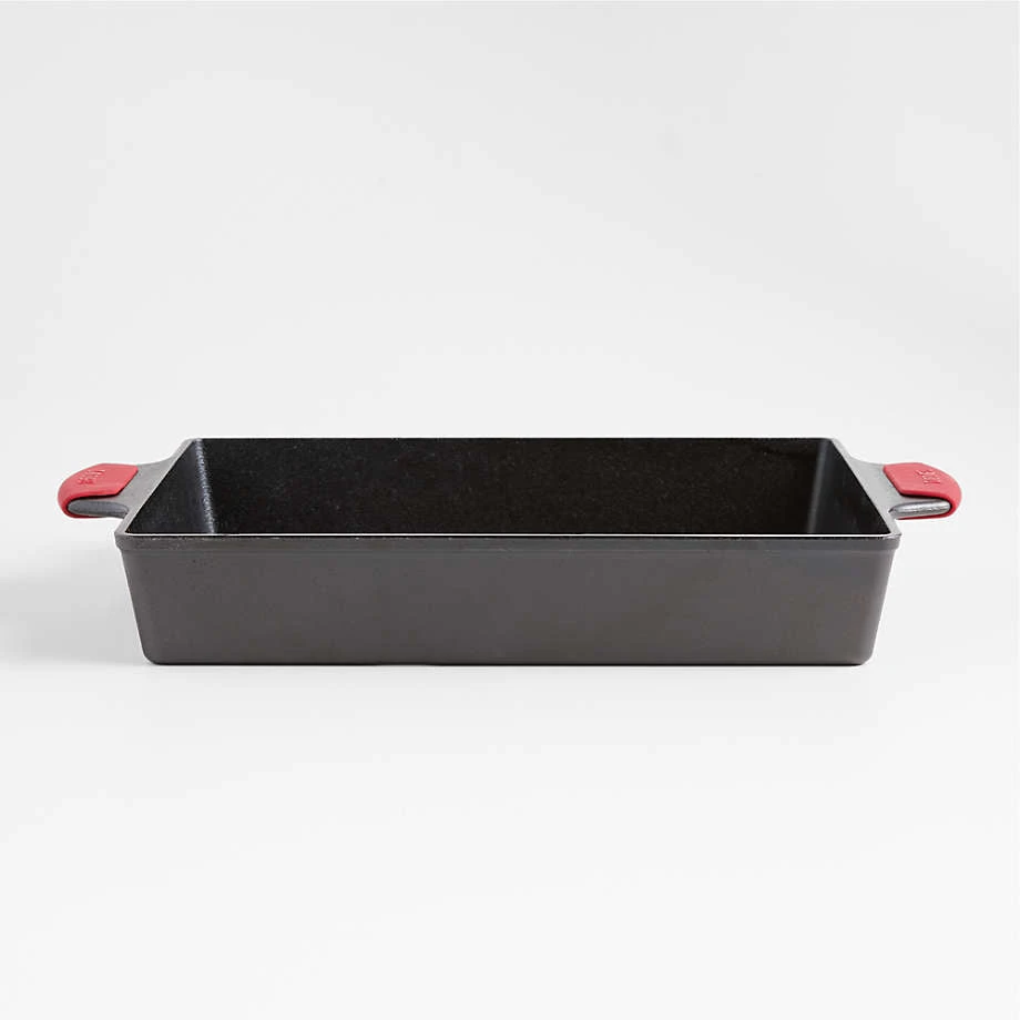 Lodge’s long-revered cast iron shapes a pan designed especially for baking, crafted with crisp edges, high walls and modern details. Retaining and distributing heat evenly, the sturdy cast iron will not dent, bend or warp while baking lasagna, farro casserole or cherry cobbler for a crowd. The pan is pre-seasoned and ready to use and features snap-on red silicone handles that provide easy lifting and a comfortable grip.