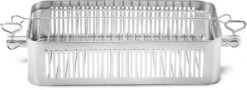 Securely hold your favorite foods like ribs, lamb racks, and large vegetables with the Napoleon adjustable stainless steel rotisserie basket. Secure food in this four-level adjustable rack so that it is held in place for perfect, all-around cooking. Rotisserie cook foods that you never thought you could in this food-grade stainless steel cage. This rotisserie accessory is designed to fit both hex and square spit rods to ensure that it can be used on all barbecues. This accessory is easy to clean, both by hand and in the dishwasher. Clever, multifunctional, and easy to maintain, every kitchen benefits from the addition of a Napoleon barbecue accessory.