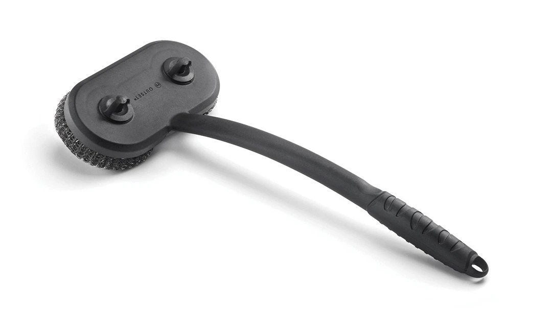 Bristle free and ready to steam. This dual padded scrubber is non-clogging, non-abrasive and safe with all grill types, including porcelain. The woven mesh heads are replaceable and can be used to steam clean your grill surface when dipped in water.