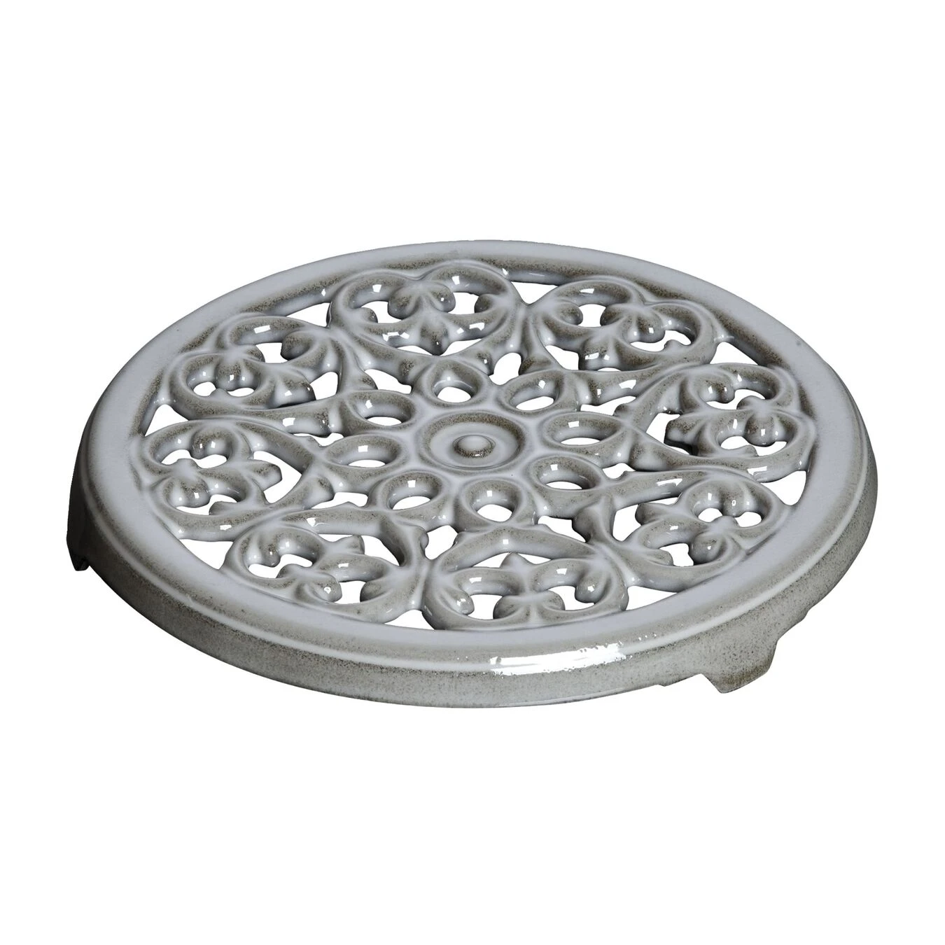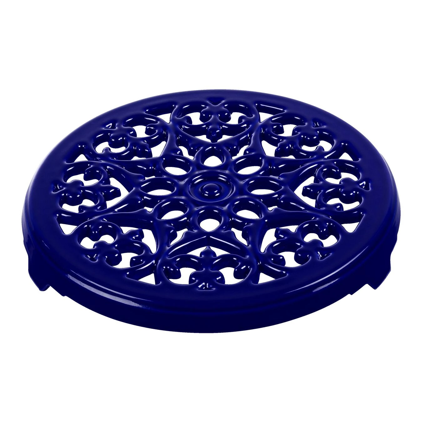 The cast iron pot stand from the Staub Accessories range provides a stable and practical means to safely set down pots, tea kettles, gratin dishes, baking tins or other hot objects. Measuring 23 cm, the round stand is also a beautiful eye-catcher thanks to its special and intricate design with the circular lily motif. This heraldic lily used to adorn the coats of arms of emperors and kings ” and now it embellishes this stylish and helpful accessory for your kitchen and dining room by Staub.