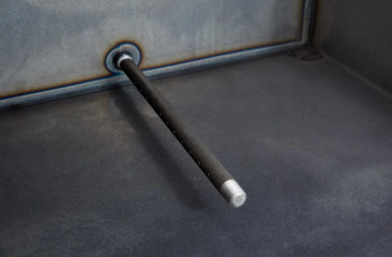 - Stainless steel screw intake damper on the firebox for precise temperature control and upper smoke stack damper for controlling smoke